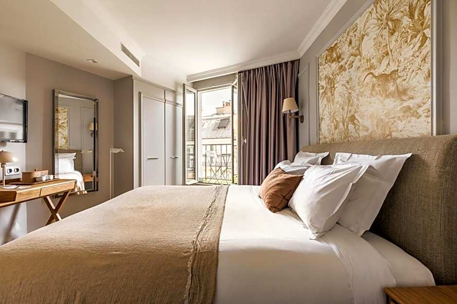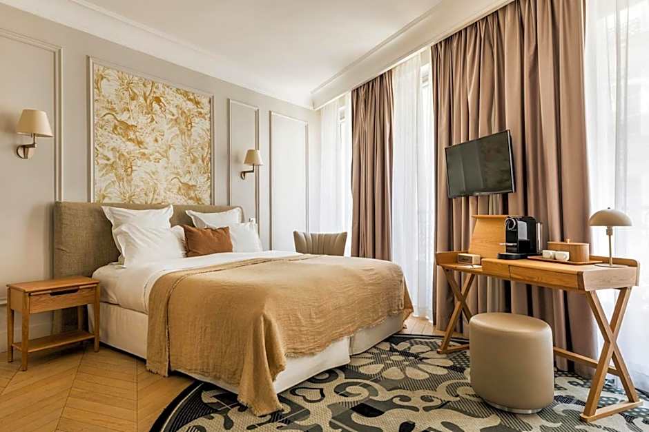 With parquet floors and moldings, this double room has a flat-screen TV and a private bathroom with a hairdryer.